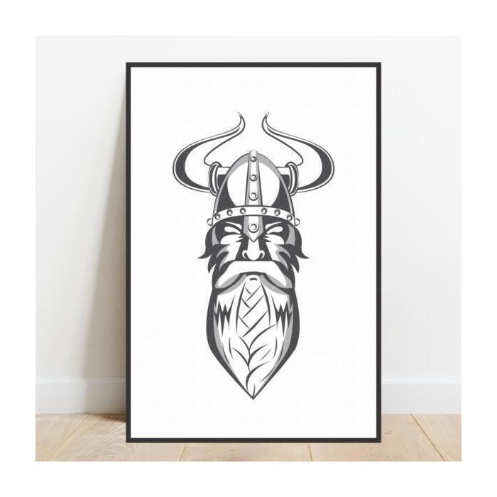 Quadro com moldura elmo viking barba medieval nerd 40x60 Mix