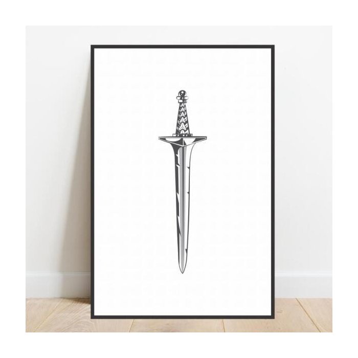Quadro com moldura espada viking medieval rpg nerd 40x60 Mix