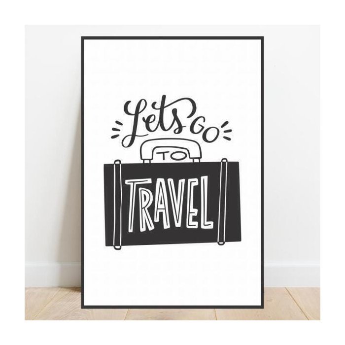 Quadro com moldura frase viagem lets do travel 40x60 Mix