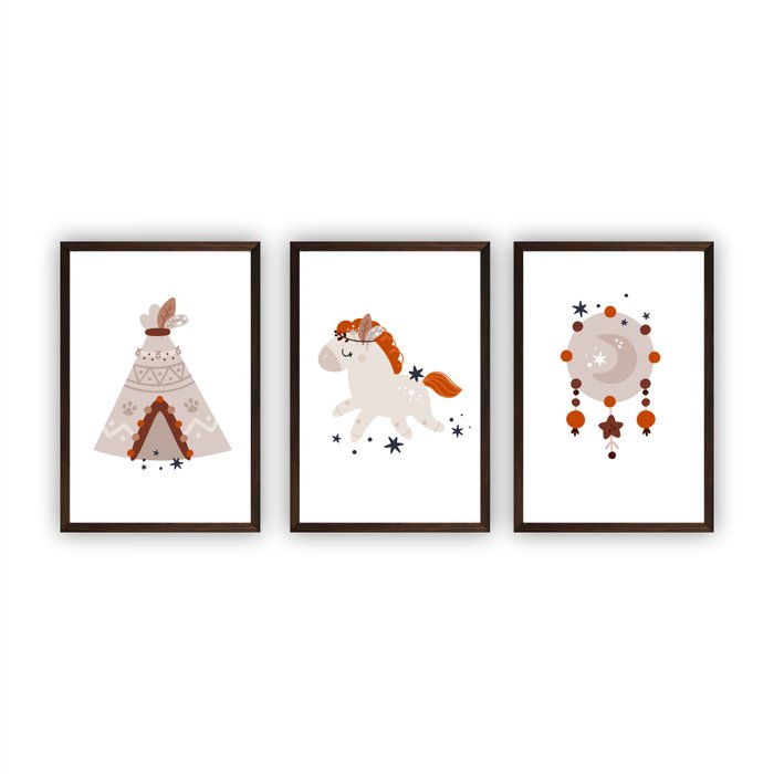 Quadro com moldura marrom e vidro Unicórnio Oca Decoração quarto infantil