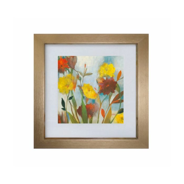 Quadro decorativo com gravura Floral moderna colada em Eucatex ( MDF ), com paspatur branco, moldura de madeira(não é MDF ) na cor ouro e vidro.