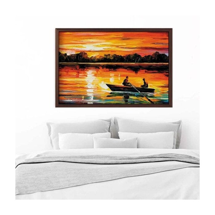 Quadro com Moldura Passeio de Canoa MADEIRA ESCURA - Médio