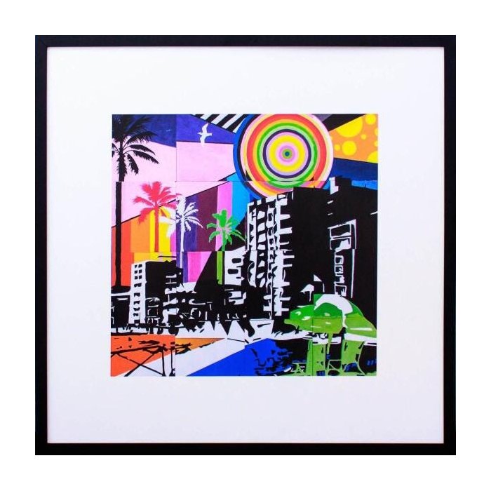 Quadro com Moldura Preta Cidade Abstrata Colorida 80x80cm