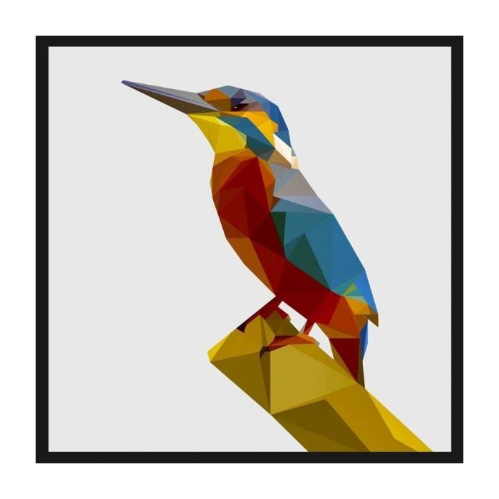Quadro com Moldura Preta Ilustração Pica-pau Geométrico 80x80 cm