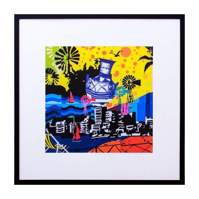 Quadro com Moldura Preta Paisagem Abstrata Colorida 80x80cm