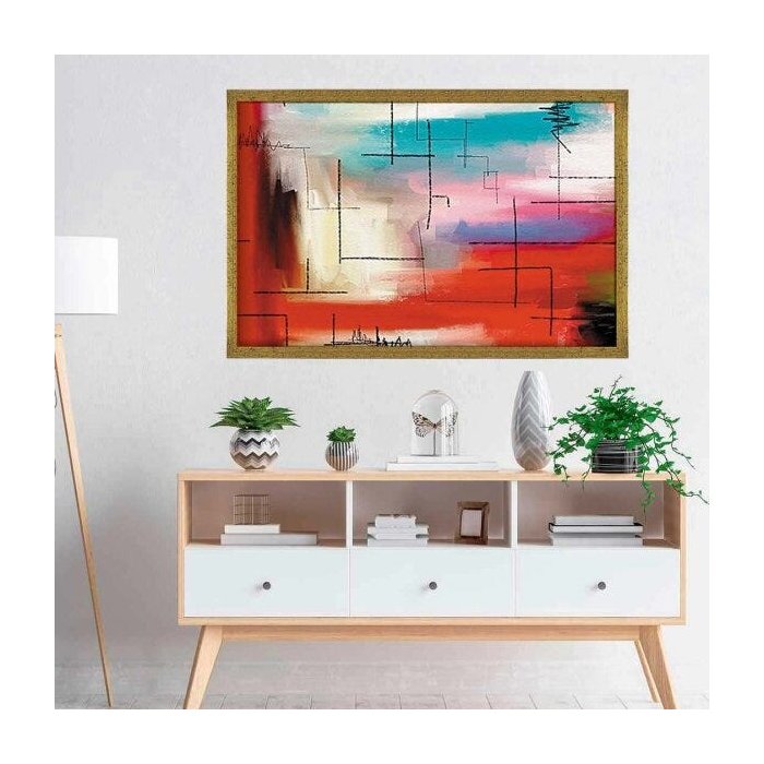 Quadro com Moldura Traços à Giz Abstrato Dourado - Grande