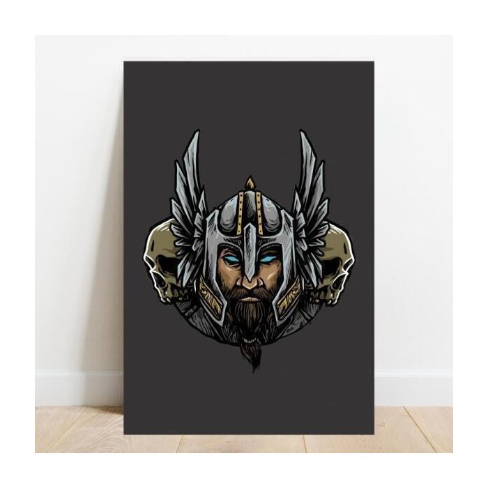 Quadro com moldura viking barba medieval nerd odin 40x60