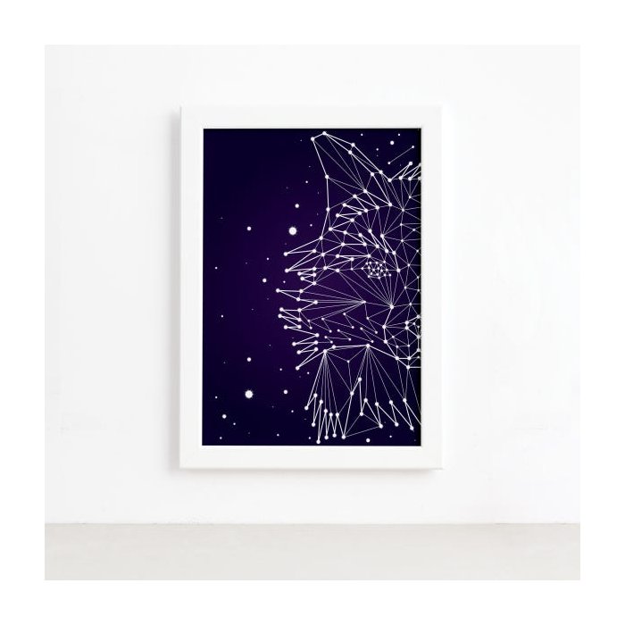 Quadro Constelação Lobo Moldura Branca 33x43cm Colorido