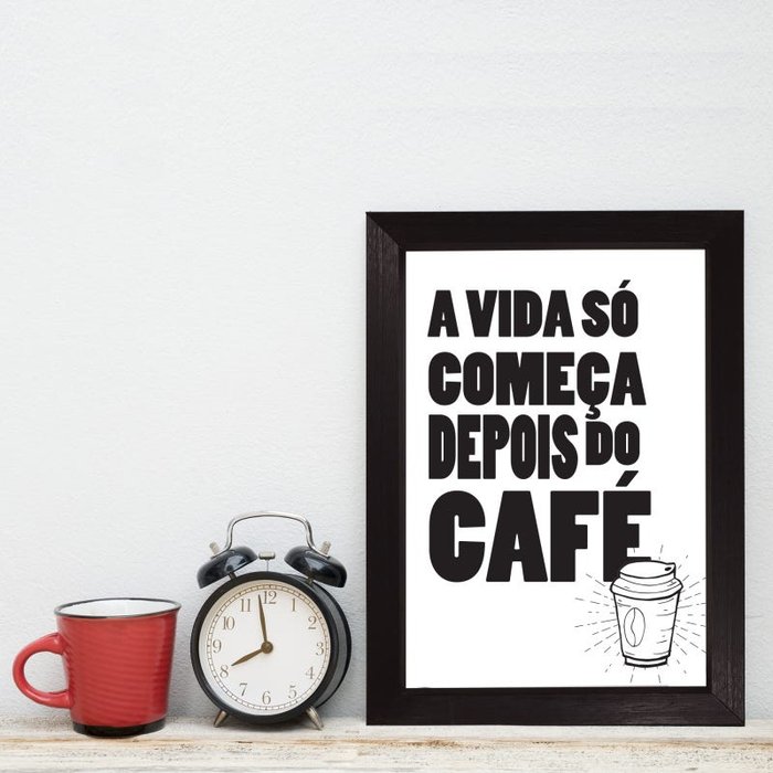 Quadro Cozinha Frase Depois do Café com Moldura Preta 22x32cm Branco