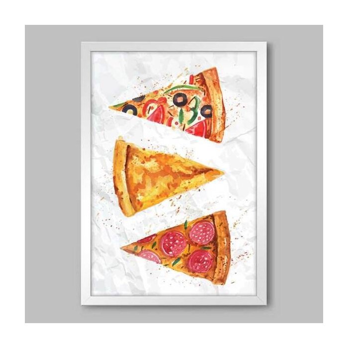 Quadro Cozinha Pizza Fatias - 90x60cm - Moldura Caixa Branco
