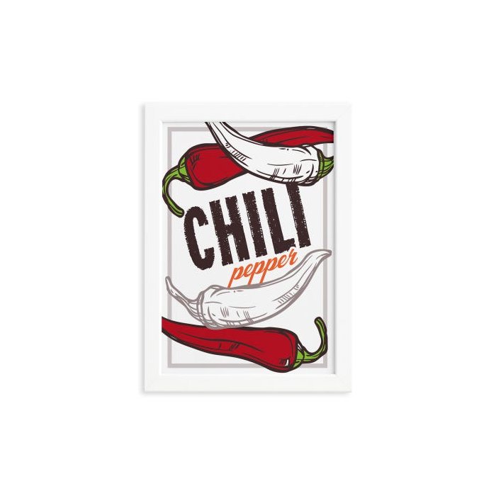 Quadro Cozinha Tempero Chili Pepper Moldura Branca 33x43cm