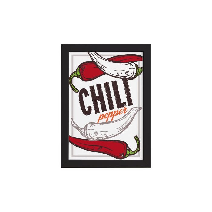 Quadro Cozinha Tempero Chili Pepper Moldura Preta 33x43cm