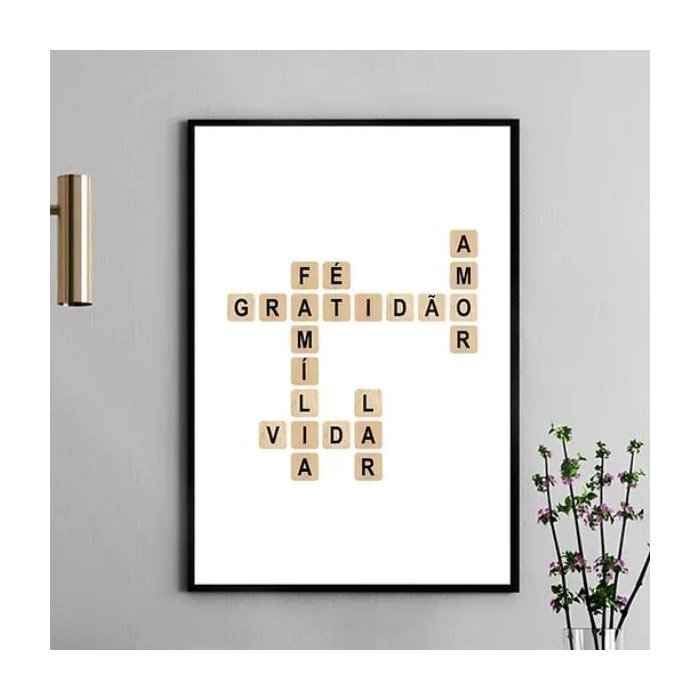 Quadro Cruzadinha Gratidão Família Amor 24x18cm - com Vidro:moldura Branca