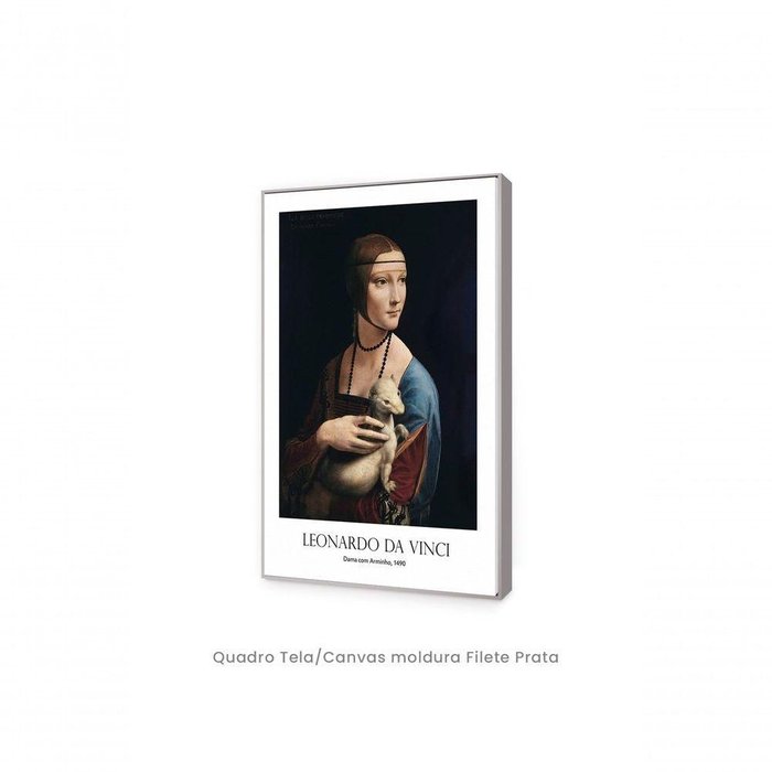 Quadro Decorativo "dama Com Arminho, 1490" De Leonardo Da Vinci Quadro Tela/canvas Moldura Filete Prata - 60x84cm