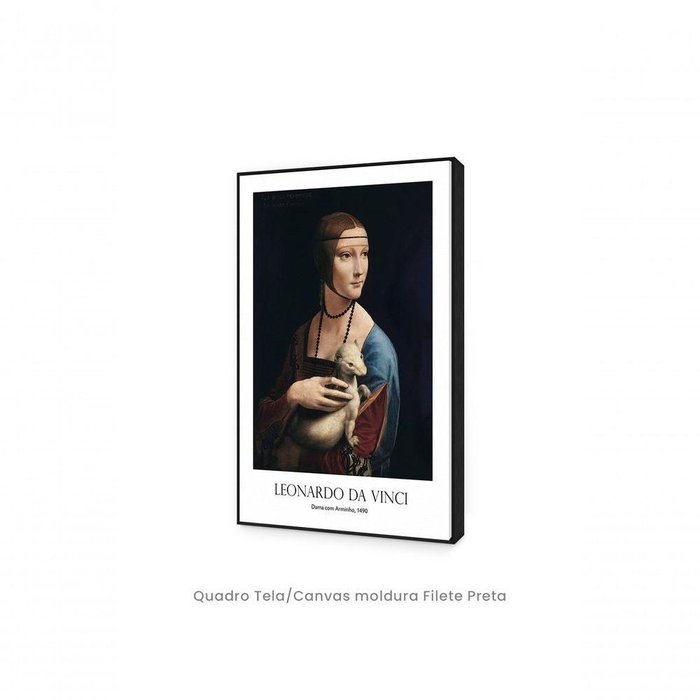 Quadro Decorativo Dama com Arminho, 1490 de Leonardo Da Vinci Quadro Tela/Canvas moldura Filete Preta - 84x119cm - Quadro Decorativo Top Quadros
