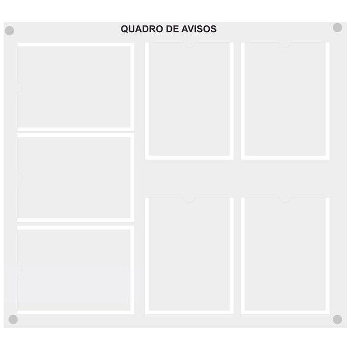 Quadro de Aviso Gestão com 7 Displays A4 Acrílico Branco Branco