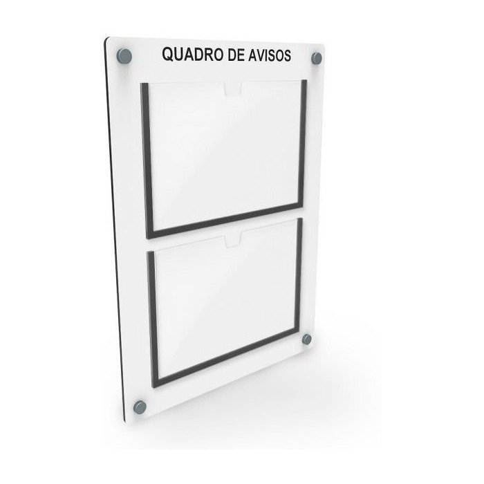 Para melhor conservação de qualquer material acrílico e do quadro de avisos, ao realizar a limpeza não utilize álcool puro ou solventes, apenas um pano úmido e macio é suficiente.