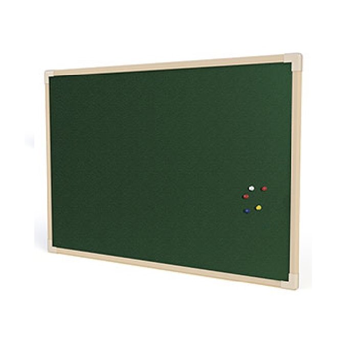 Quadro de aviso com moldura em madeira pinus de reflorestamento e cantos plásticos, tampo com acabamento em feltro, base em cardboard. Para uso de alfinete tipo taça, para quadro de feltro. Acompanha kit para instalação.