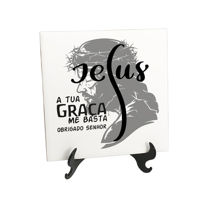 Quadro de Azulejo Católica Imagem Jesus A tua Graça Me Basta Dê um toque divertido na decoração da sua casa com o Quadro Azulejo Quadro de Azulejo Católica Imagem Jesus A tua Graça Me Basta. O azulejo decorativo de mesa conta com acabamento brilhante. Como utilizamos matéria prima importada, as cores e os detalhes são mais brilhantes, vivos e bem definidos. Pode comprar com tranquilidade pois nunca irá desbotar. Antes que fique a dúvida, sim, já acompanha o suporte que está na foto para que o quadro fique em pé. Só faltava não acompanhar, né Além de ser uma peça decorativa criativa, diferente e que combina tanto com ambientes profissionais quanto caseiros, é um presente inesquecível. Não tem como errar na escolha: com 15 cm de altura x 15 cm de largura x 0,5 cm de espessura, não é exageradamente grande nem pequeno, simplesmente ideal. Cerâmica ou porcelana, você sabe qual é mais resistente e durável - A cerâmica costuma ser mais pesada e ter maior porosidade que a porcelana, apresentando maior resistência e durabilidade. A cerâmica é amplamente utilizada nos mais diversos objetos decorativos. Ficha Técnica Marca: For My God Modelo: Católica Imagem Jesus A tua Graça Me Basta Material: Cerâmica com acabamento brilhante Acompanha suporte: Sim Tamanho (A x L): 15cm x 15cm Espessura: 0,5cm Limpeza: Somente com pano úmido Cuidados: Não utilizar produtos químicos ou abrasivos Conteúdo Da Embalagem: 1x Quadro de Azulejo Católica Imagem Jesus A tua Graça Me Basta1x Suporte de mesa para azulejo decorativo IMPORTANTE: - seguimos todos os procedimentos técnicos para garantir a reprodução das cores conforme nas imagens, porém é normal que os produtos apresentem variações nas tonalidades por conta das diferenças das telas dos monitores ou celulares nos quais eles estão sendo visualizados. Vale dizer, as cores que você está vendo podem ficar mais claras ou escuras em relação ao produto real por conta da tela em que estão sendo exibidos. Trata-se de um fenômeno comum a todos os produtos da categoria, mas nada para se preocupar :) -