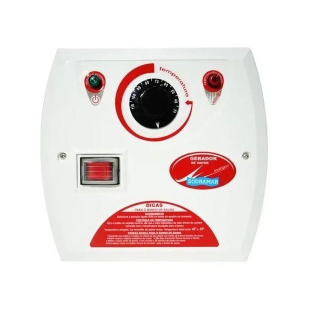 QUADRO DE COMANDO ANALÓGICO PARA SAUNA SODRAMAR; MODELO: ANALÓGICO; PRODUTO NOVO, DIRETO DA FÁBRICA, LACRADO; GARANTIA: DE 03 MESES DO FABRICANTE CONTRA DEFEITOS DE FABRICAÇÃO; Descrição: O Comando Analógico para Sauna a Vapor Inox é um produto de suma importância para a automatização de seu ambiente de sauna. Com ele, você pode controlar a temperatura de seu ambiente, ligando ou desligando o gerador sempre que o ambiente atingir determinada temperatura. Além de ser bastante útil e versátil, o Comando Analógico para Sauna a Vapor Inox se destaca pela sua praticidade, automatizando o seu ambiente de sauna e garantindo ainda mais comodidade. O modelo é fabricado em um plástico de boa qualidade, e possui um termostato que controla a temperatura. Feito em polietileno, o Comando Analógico para Sauna a Vapor Inox apresenta muita durabilidade, tendo uma longa vida útil. O termostato do modelo é bastante preciso, e controla a temperatura do ambiente com muita facilidade. Além disso, o produto ainda possui um exclusivo painel explicativo com orientações de como tomar um banho de sauna. Muitas das pessoas que utilizam o Comando Analógico para Sauna a Vapor Inox em suas saunas recomendam a aquisição do mesmo, pois o produto garante muita praticidade e comodidade em sua utilização, além de ser um produto com um ótimo custo-benefício. Fabricado em polietileno, dotado de termostato para controle de temperatura, tem por finalidade proporcionar maior conforto no uso do gerador de vapor. Possui exclusivo painel explicativo com orientações de como tomar um banho de sauna