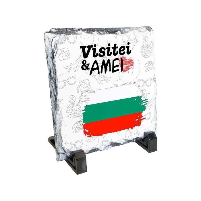 1x Quadro De Pedra Bandeira Bulgária Visitei E Amei Viagem