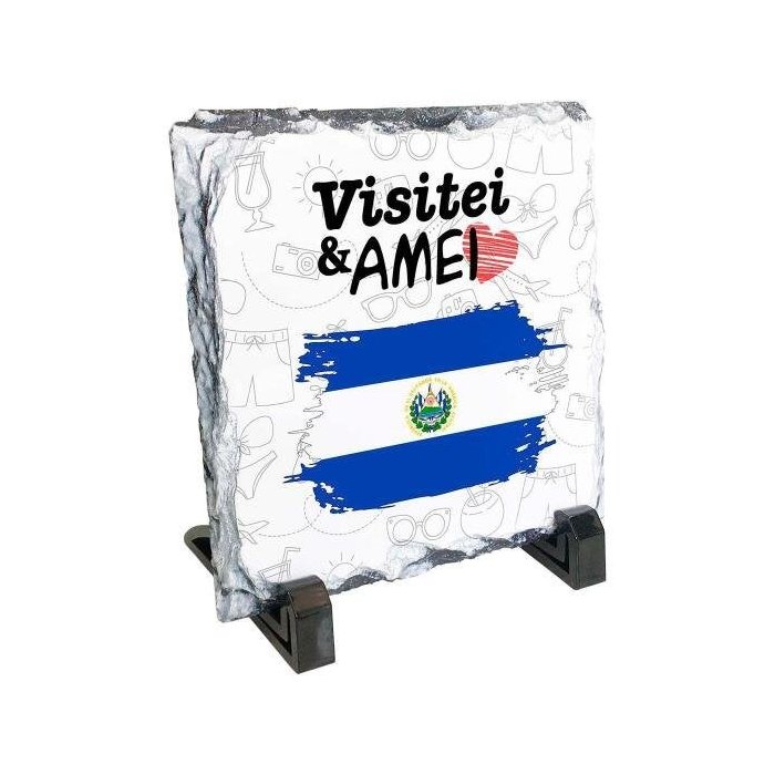 1x Quadro De Pedra Bandeira El Salvador Visitei E Amei Viagem