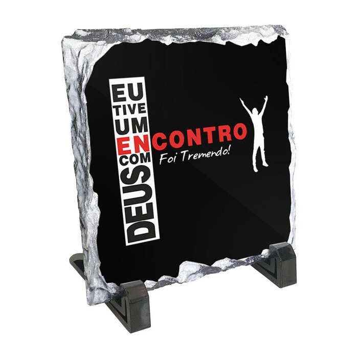 Quadro de Pedra Evangelico Eu Tive Um Encontro Com Deus Quadro decorativo de mesa feito sob pedra ardósia. Como utilizamos matéria prima importada, as cores e os detalhes são mais brilhantes, vivos e bem definidos. Pode comprar com tranquilidade pois nunca irá desbotar. Antes que fique a dúvida, sim, já acompanha as peças de suporte que estão na foto. São 2 peças de base para que o quadro fique em pé. Só faltava não acompanhar, né Além de ser uma peça decorativa criativa, diferente e que combina tanto com ambientes profissionais quanto caseiros, é um presente inesquecível. Por que é uma ótima decoração ou presente Bom, falamos por experiência mesmo. Fomos presenteados com um e amamos, então decidimos criar essa linha de produtos. Está na nossa empresa até hoje. É muito procurado e mais bonito ainda ao vivo. Não tem como errar na escolha: com 15 cm de altura x 15 cm de largura x 1,5 cm de espessura, não é exageradamente grande nem pequeno, simplesmente ideal. Ficha Técnica Marca: For My God Modelo: Evangelico Eu Tive Um Encontro Com Deus Material: Pedra ardósia Acompanha suporte: Sim, 2 peças de base (1x par) Tamanho (A x L): 15cm x 15cm Espessura: 1,5cm Limpeza: Somente com pano úmido Cuidados: Não utilizar produtos químicos ou abrasivos Conteúdo Da Embalagem: 1x Quadro de Pedra Evangelico Eu Tive Um Encontro Com Deus 1x Par de peças de suporte IMPORTANTE: - Seguimos todos os procedimentos técnicos para garantir a reprodução das cores conforme nas imagens, porém é normal que os produtos apresentem variações nas tonalidades por conta das diferenças das telas dos monitores ou celulares nos quais eles estão sendo visualizados. Vale dizer, as cores que você está vendo podem ficar mais claras ou escuras em relação ao produto real por conta da tela em que estão sendo exibidos. Trata-se de um fenômeno comum a todos os produtos da categoria, mas nada para se preocupar :) -