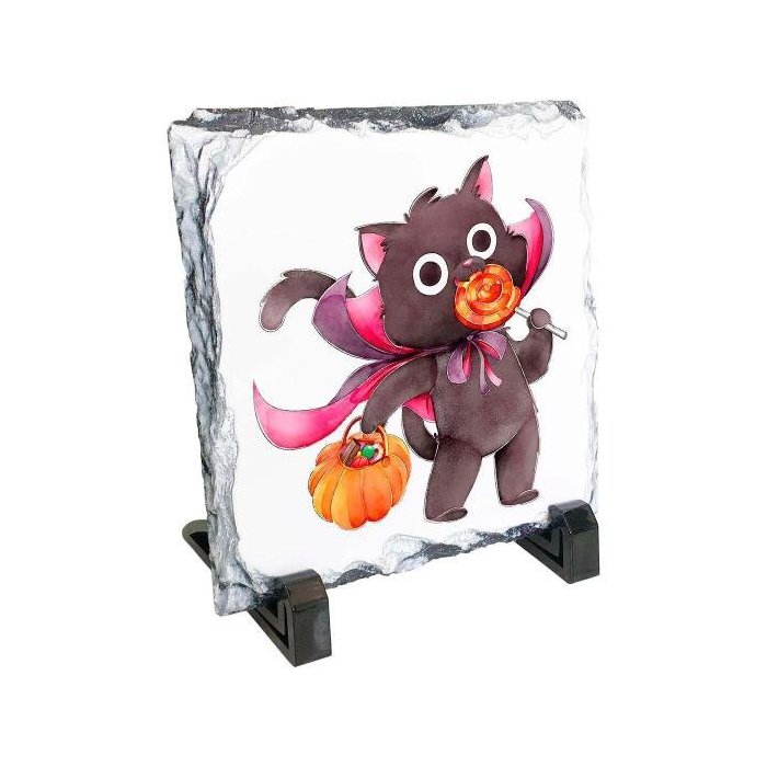 1x Quadro De Pedra Gatinho Halloween Gato Dia Das Bruxas