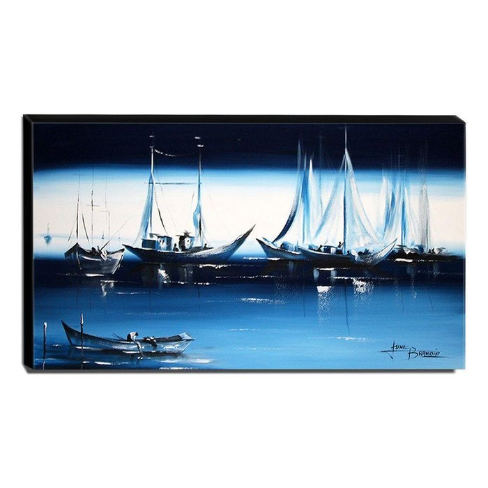 Quadro De Pintura Barcos 70x120cm-1285
