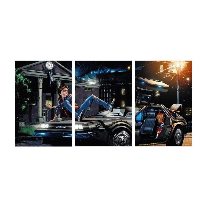 Quadro De volta Para O Futuro Estilo Cartoon 3 Telas Armação em Mdf