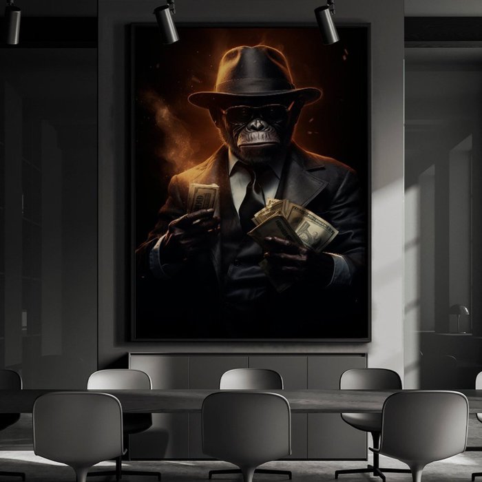 Quadro Decorativo 1 Tela Macaco com Dinheiro Diversos Tamanhos Preto