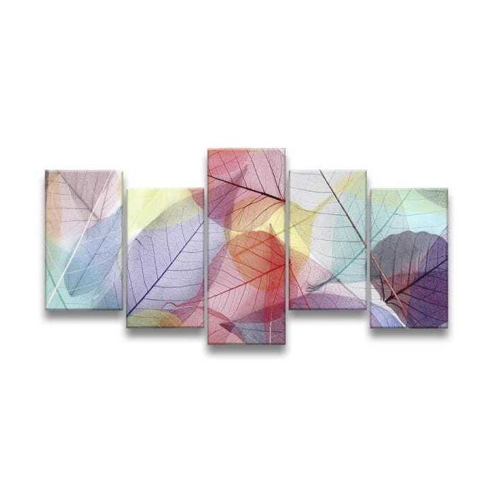 Quadro Decorativo 129x63 Sala Quarto Arte Folhas Coloridas Colorido