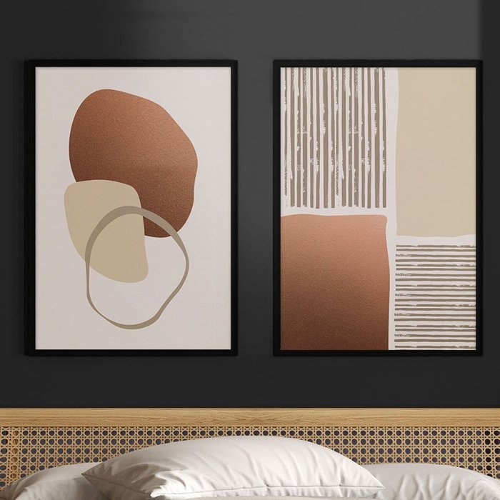 Quadro Decorativo 2 Telas Geo Terracota Diversos Tamanhos Tabaco