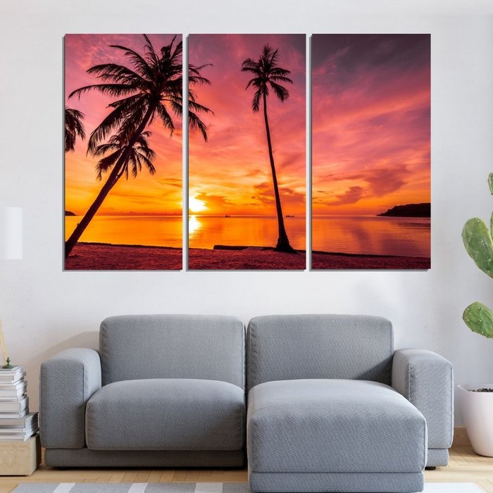 Quadro Decorativo - 3 Telas - Nascer do Sol a Beira Mar - 180x120