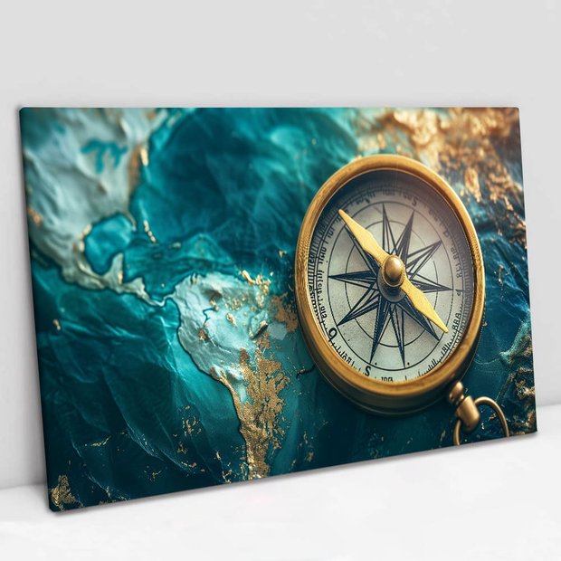 Quadro Decorativo a Bussola e o Mapa em tela Canvas