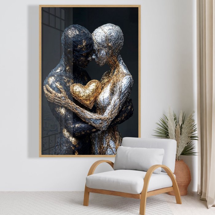 Quadro Decorativo a Conexão entre Almas Dourado Prata Sala Quarto Casa Escritório