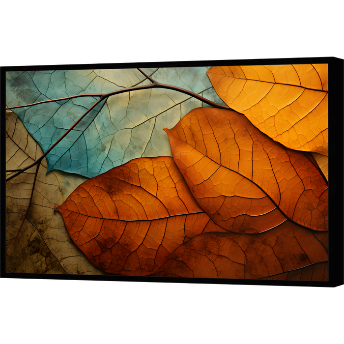 Quadro Decorativo Abstrato Canvas com Moldura Luxo Filete Folhas Folhagens Gg colorido