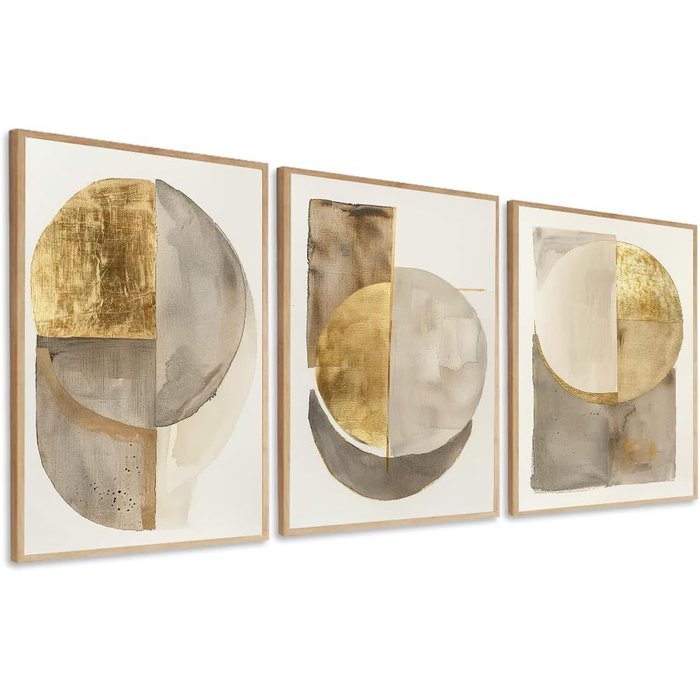 Quadro Decorativo Abstrato Circulo Gold Moderno Geometrico Luxo Sala Quarto com Moldura