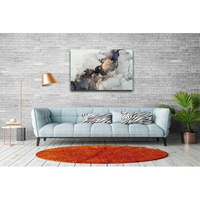 Quadro Decorativo Abstrato Fumaça:90x60 cm/DOURADA