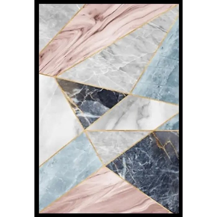 Quadro Decorativo Abstrato Geometrico com Moldura Caixa Preta 3cm de Profundidade(100x70cm)