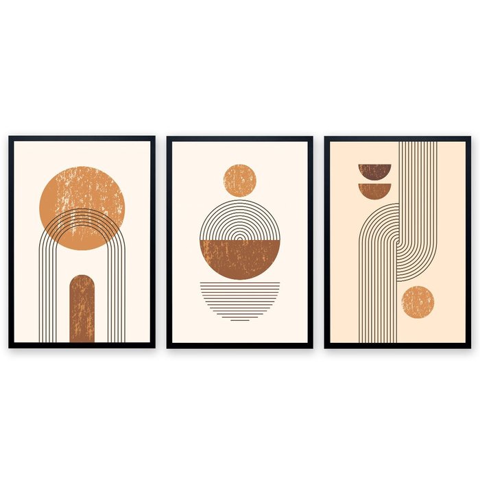 Quadro Decorativo Geométrico Linhas e Formas 3 telas 60x90cm para Escritório, Hall, Quarto, Sala, Cozinha, Banheiro, Hall de Entrada.