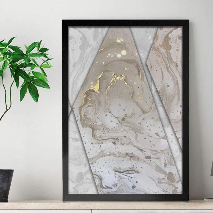 Quadro Decorativo Abstrato Mármore Bege Com Dourado-34x49Cm