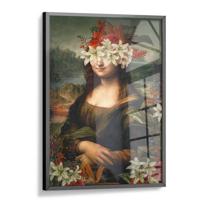 Quadro Decorativo Abstrato Mona Lisa Rosto com Flores-34x49Cm
