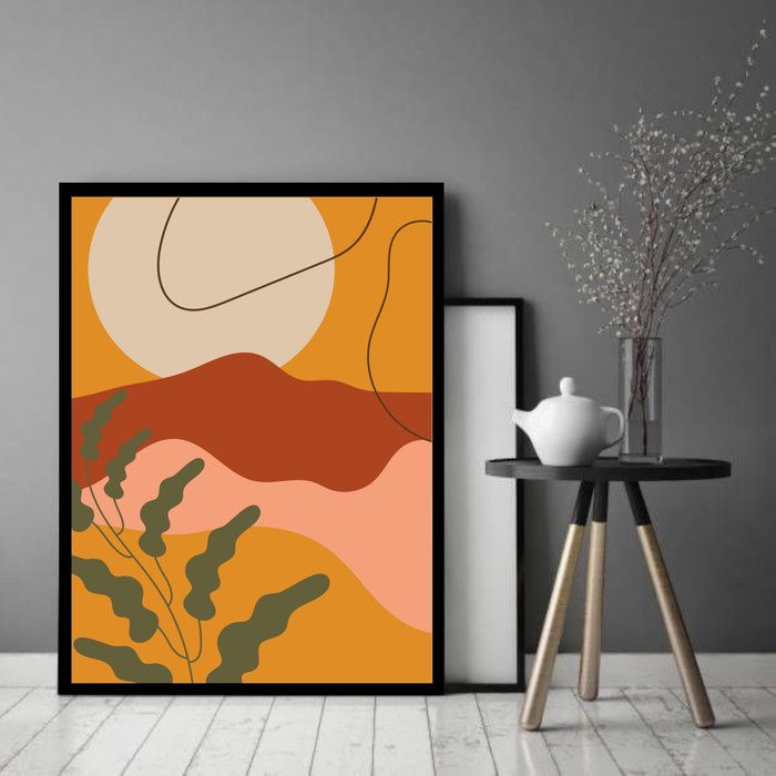 Quadro Decorativo Abstrato Sol Vale Folha - 70x50cm:moldura Branca Moldura Branca