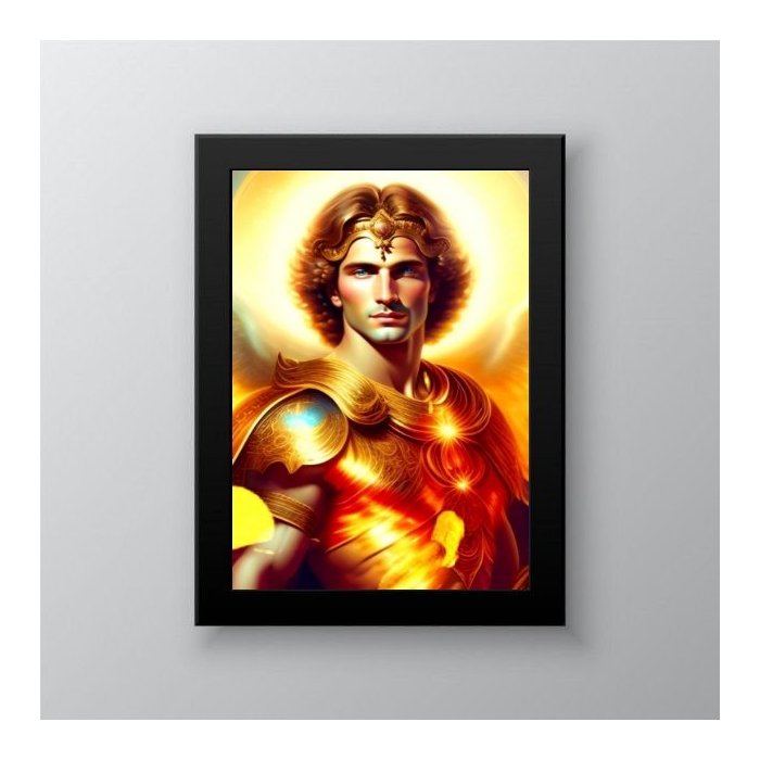 Quadro Decorativo Arcanjo Uriel 24x18cm:Madeira preta