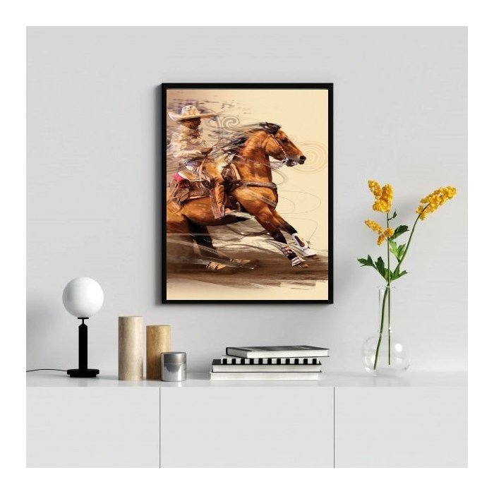 Quadro Decorativo Arte Boiadeiro 24x18cm - com Vidro:madeira Preta Preta