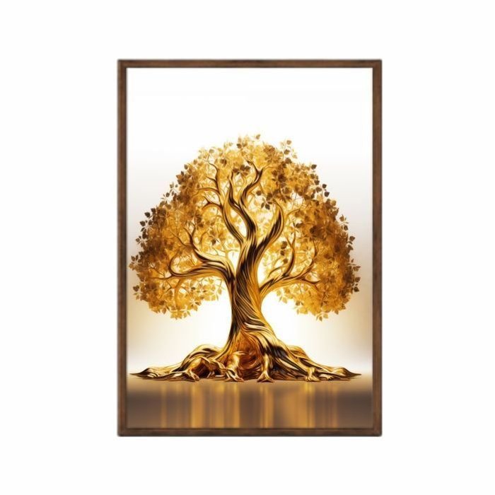 Quadro Decorativo - Arvore da Vida Dourada Art052 - Vidro com Impressão Uv - 80x60cm dourado