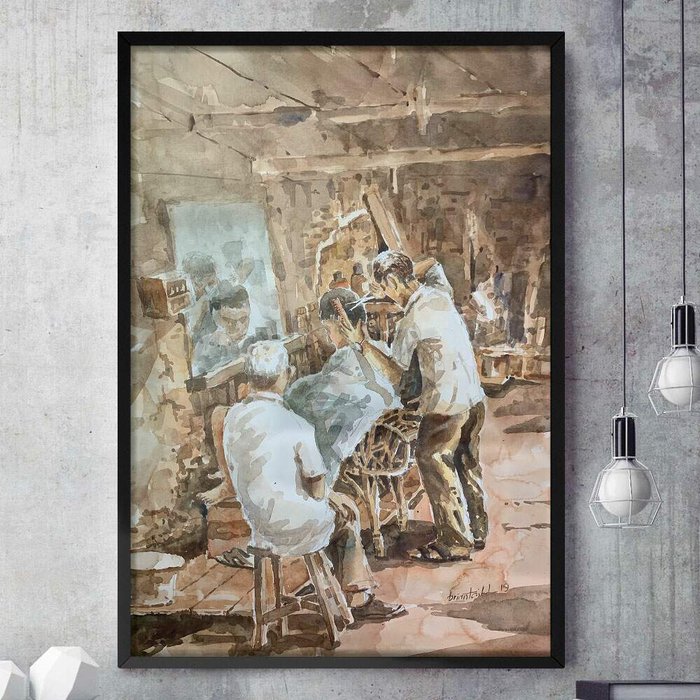 Quadro Decorativo Barbearia Pintura Antiga-34x49Cm