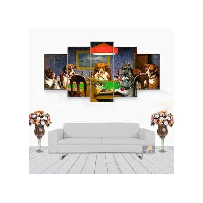 Quadro Decorativo Cachorros Jogam Baralho 115X60 5 Peças 5
