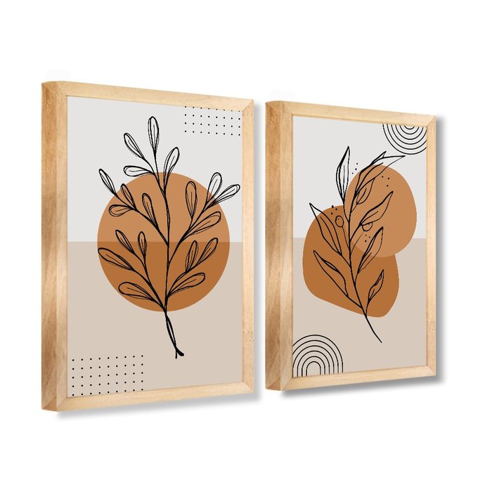 Quadro Decorativo Caixa Alta 2 un 40x60 Folhas Minimalismo Arte na Arte Moldura Ocre